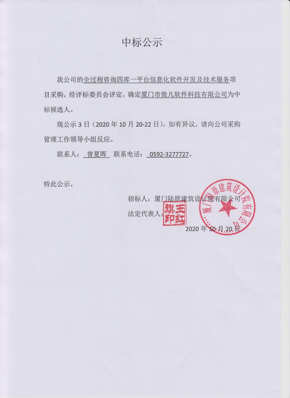 中标公示|全过程咨询四库一平台信息化软件开发及技术服务